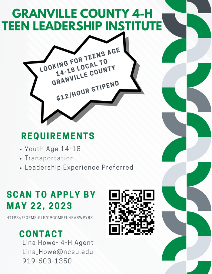 Now Open – 2023 Granville County 4-H Teen Internship Application
